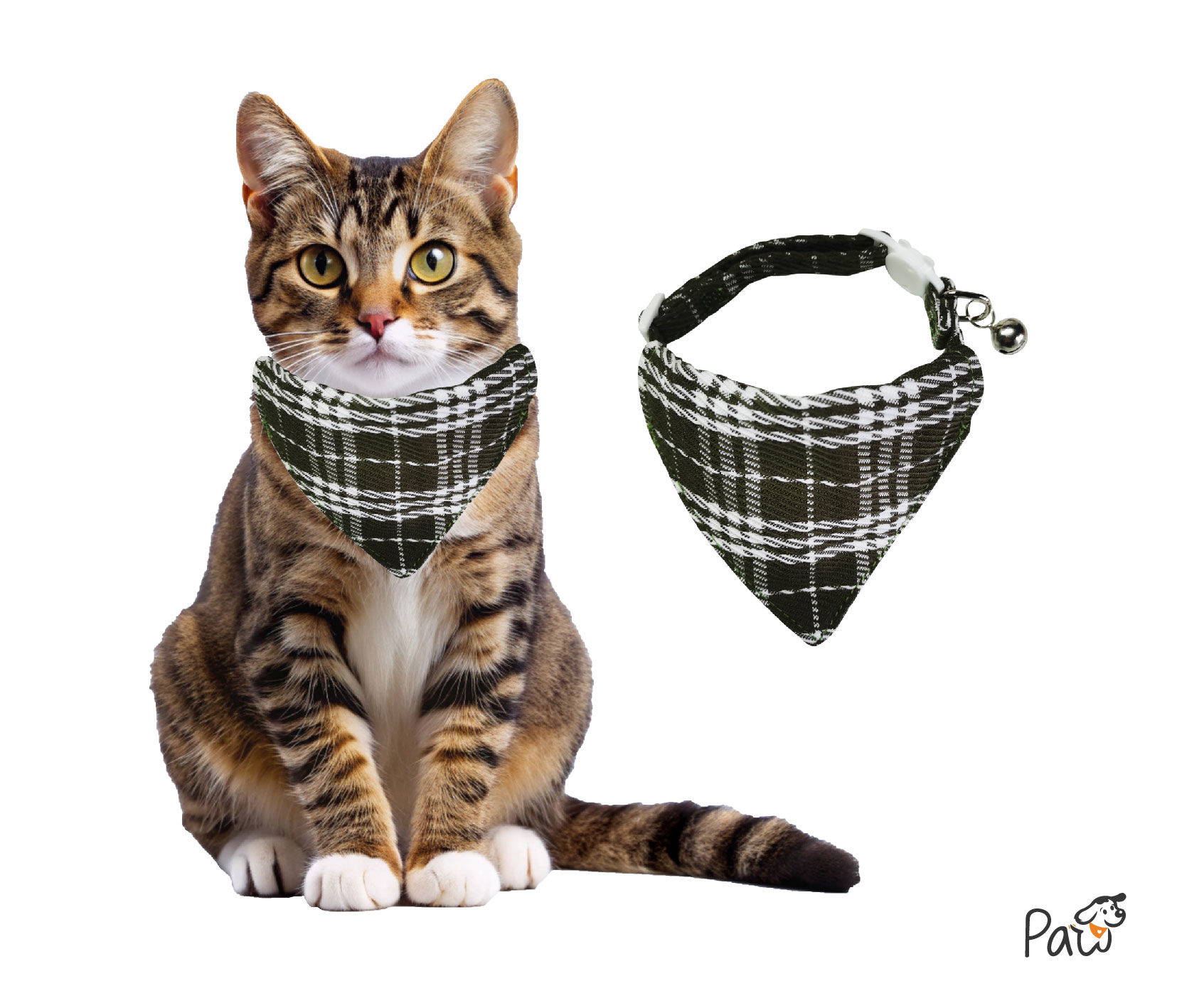 White and Dark Green Stitching Cat Collar