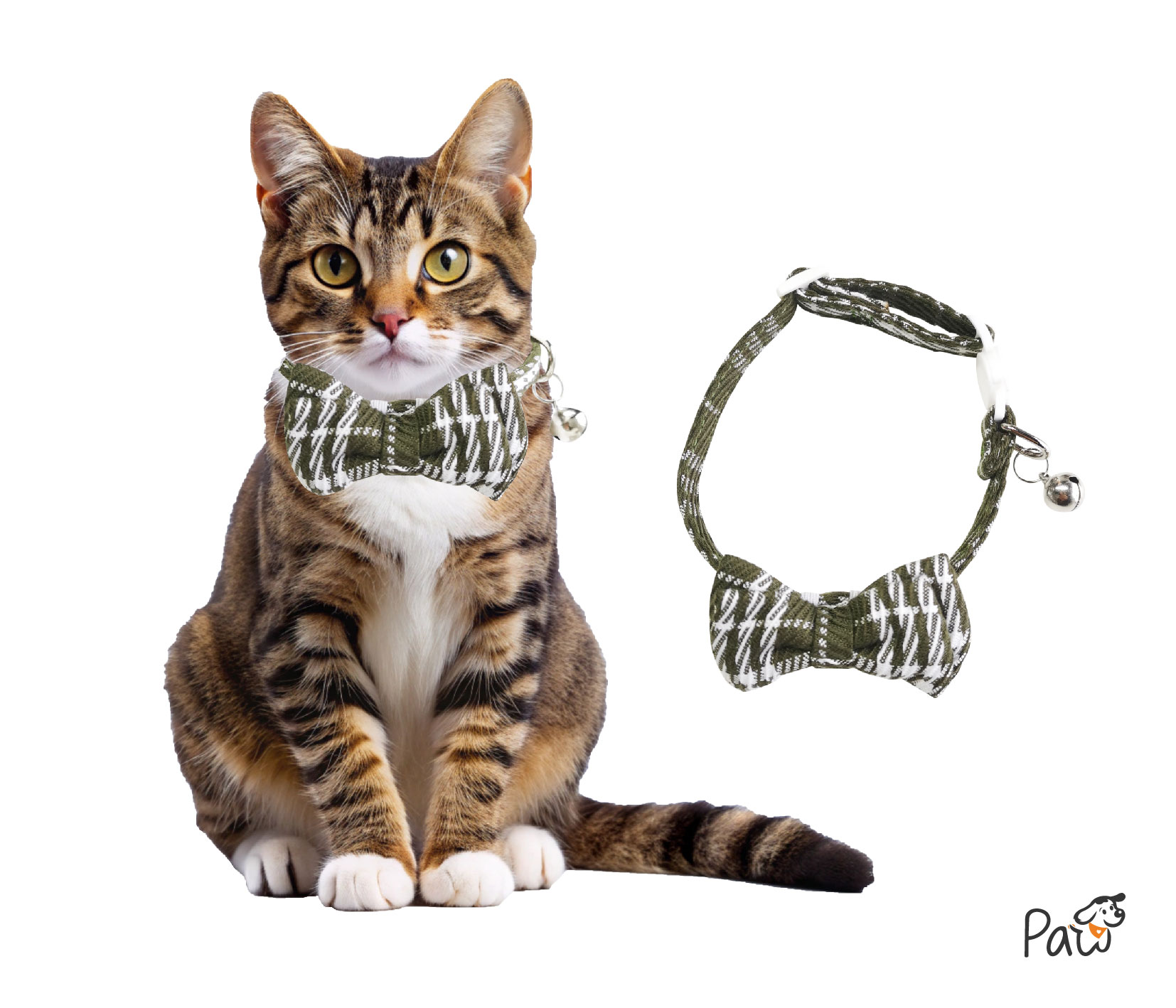 White Dark Green Bow tie Cat Collar
