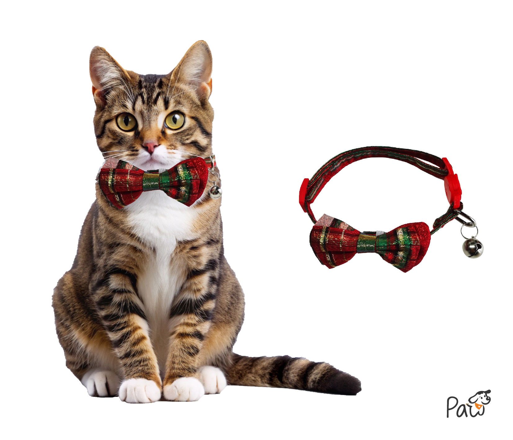 Red and Green Spliced Bow Tie Cat Collar